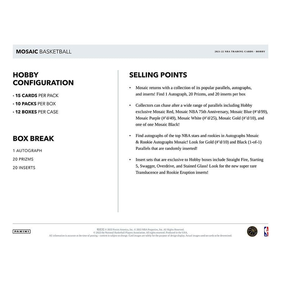 2021-22 Panini Mosaic NBA Basketball Cards Cards PRODUCT HIGHLIGHTS: