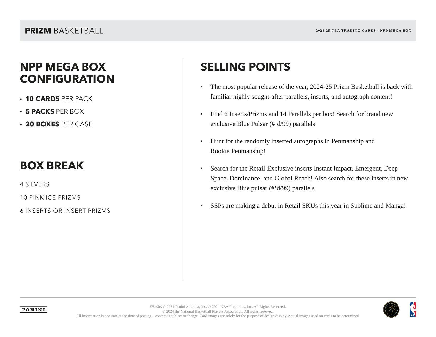 2024/25 Panini Prizm Basketball Mega Box (Pink Ice Prizms!)