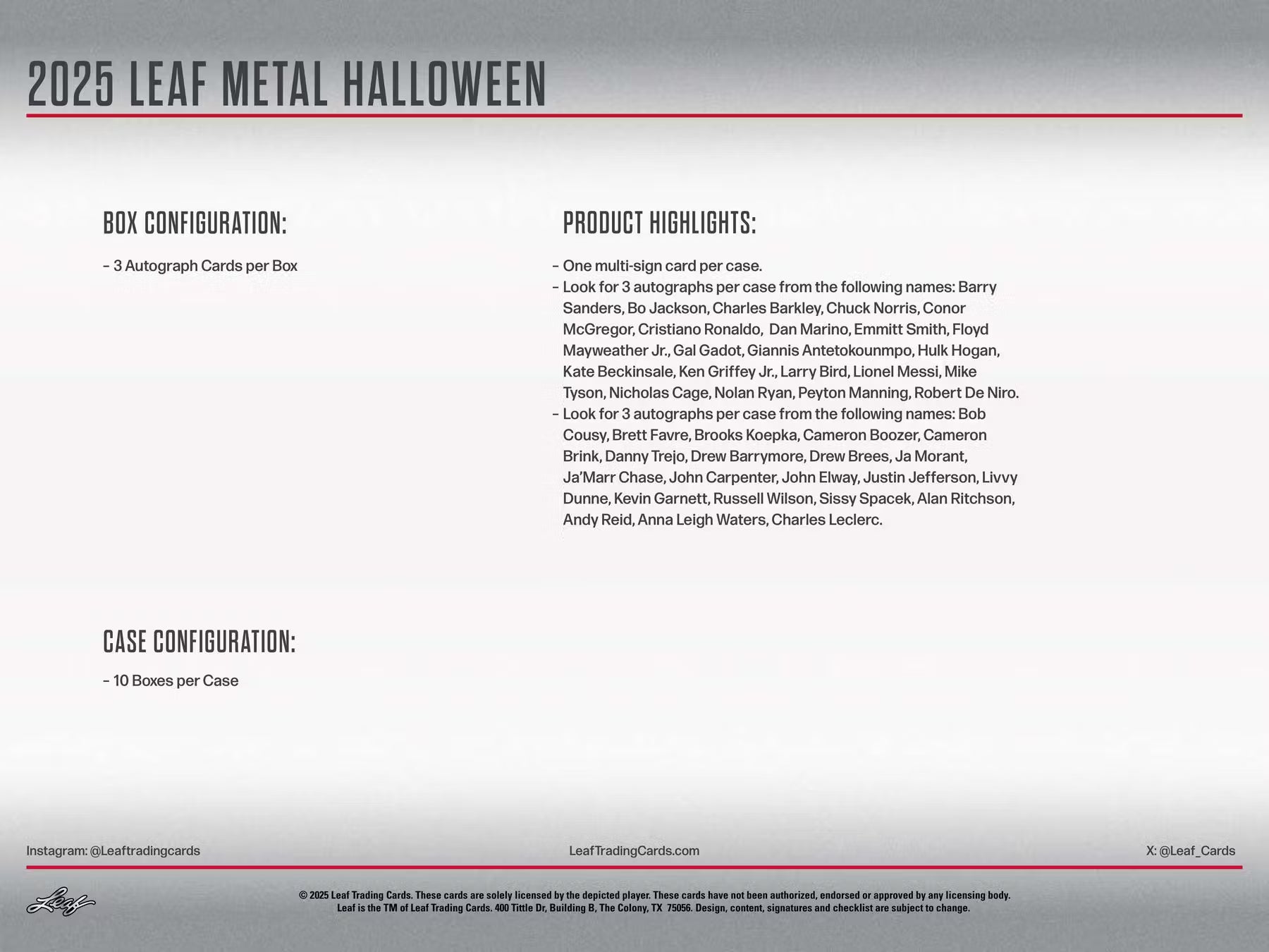 2025 Leaf Metal Halloween is a HORROR-rific experience that you've never seen before. Featuring an incredible list of spooky celebrities and scary sports stars.