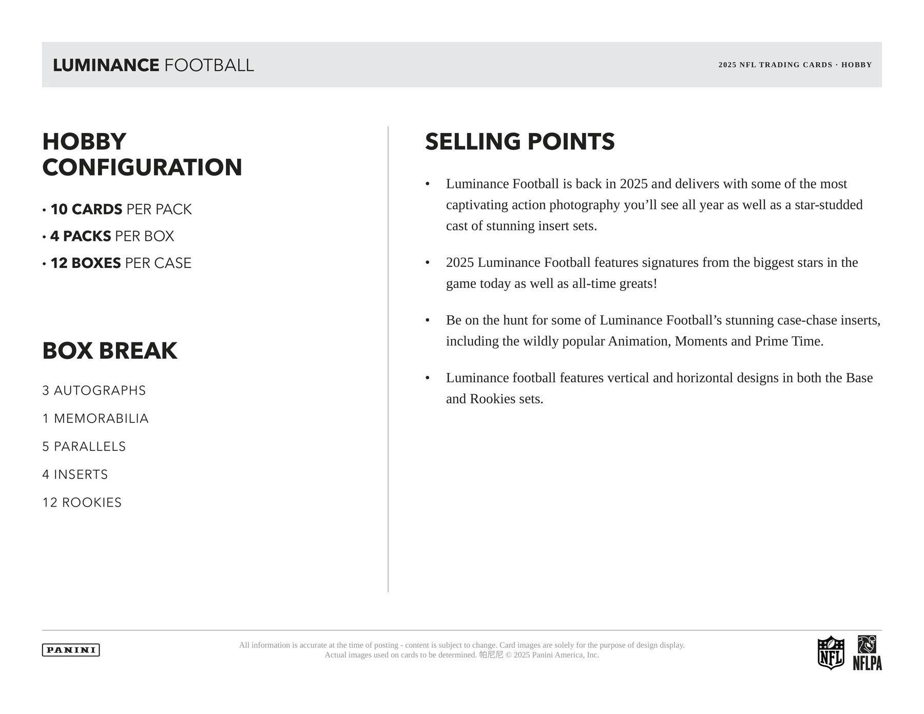 2025 Panini Luminance Football Hobby Box