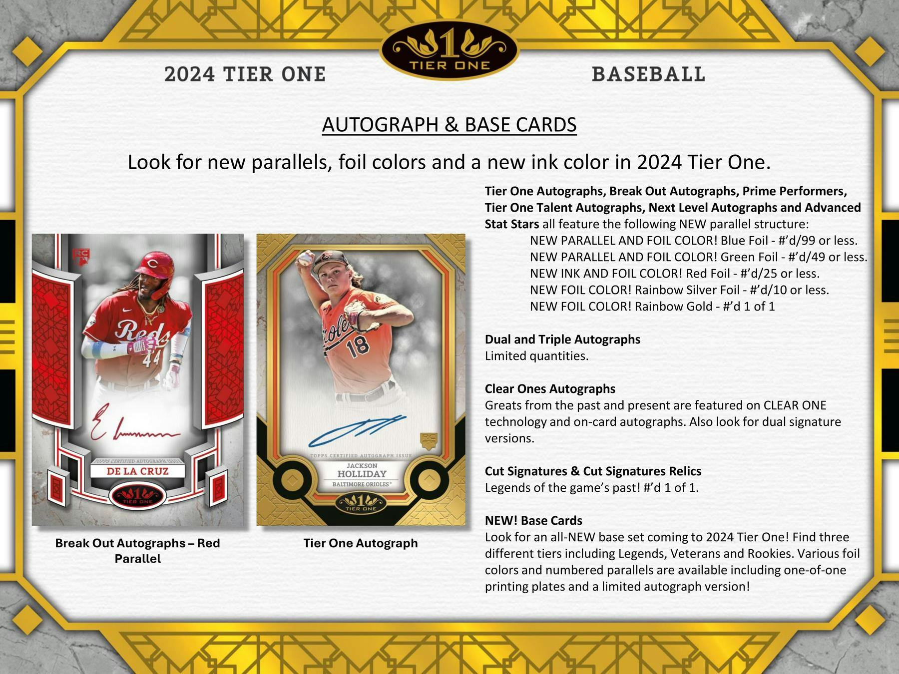 Look for new parallels, foil colors and a new ink color in 2024 Tier One.